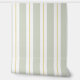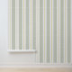Un papier peint à rayures de trois pouces de large d'un vert sauge et d'un jaune beurtasse.