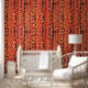 Frapper abstrait motif de forêt de bouleau ou de peuplier faux-tremble sur un arrière - plan rouge. Art original de Nic Squirrell.