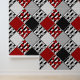 Papier Peint Blanc noir avec patchwork rétro rouge
