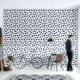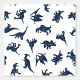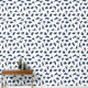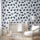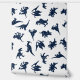 Papier peel-et-bâton amovible de pépinière vinyle avec un thème dinosaure dans les couleurs bleu marine et blanc.