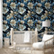 Papier Peint Bleu Chic et or Motif Floral Peel and Stick