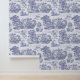 Motif classique de toile de jouy avec vieux château, campagne pastorale, animaux domestiques et sauvages dans le bois pour un décor maison élégant.