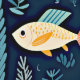 Bleu et poisson orange nager sur papier peint bleu foncé
