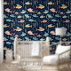 Papier Peint Bleu et poisson orange nager sur bleu foncé