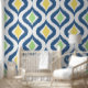 Papier Peint Bleu foncé Jaune clair Vert blanc Ikat Motif