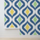 Ce design présente un mélange frappant de tons bleu foncé, blanc, jaune et vert clair, dans un style ikat à vague d'oignon. Le contour de l'oignon est sinueux, ressemblant à un "S" étendu, qui donne un visuel vivant et rythmé. La motif exhale le raffinement et l'élégance, avec une infusion d'éléments décalés et avant-gardistes. Il est à la fois contemporain chic et intemporel d'esthétique vintage, ce qui le rend polyvalent pour différents goûts et personnalités. Offert dans un éventail d'éléments de décoration maison moderne, il est parfait pour ceux qui cherchent à insuffler un caractère distinctif dans des espaces comme les chambres du maître, cuisine, salon ou chambre familiale, dortoir universitaire, condo, studio ou appartement.