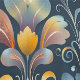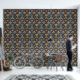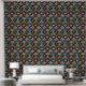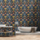 Papier Peint Bleu foncé Or Orange Art Nouveau