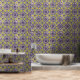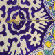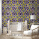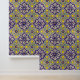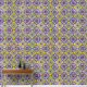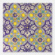 Influencé à la main peint traditionnel carreaux bleu et jaune d'Espagne, Portugal et Italie. Motif de perfection. OEuvre d'azulejo en tuiles de fleurs bleues et jaunes. Le design décoratif parfait, cadeau idéal pour toute occasion. Un beau design estival représentant des fleurs jaunes avec leur verdure et fleurit contre un motif vintage bleu et blanc.