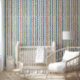 Papier Peint Bleu vert jaune Motif vertical couleur