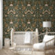 Les oeuvres d'art et d'artisanat ont inspiré le papier peint en bois avec un mélange de style victorien moderne, imprimé en bloc, et l'art populaire. Ce papier peint d'animaux de forêt présente ours, oiseaux, cerfs et renards, entourés de feuilles, fleurs et botaniques dans les tons vert, marron et rose, sur un arrière - plan vert foncé. Whimsical, storybook peel and stick fond d'écran parfait à utiliser comme un papier peint pour enfants, papier peint pépinière, papier peint de salle de jeux, et papier peint de salle de bain pour les enfants. Peel and stick fond d'écran est une option idéale pour louer du papier peint, ou fond d'écran pour do-it-yourself amateurs, propriétaires, étudiants de collège, parents et designers d'intérieur.