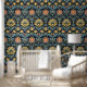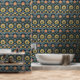 Papier Peint Blue Aqua Pink Gold Brown Art Nouveau