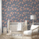Papier Peint Blush & Blue Modern Floral Vines Pattern