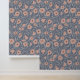 Beautiful modern floral wallpaper with a pattern of blush flowers in a simple modern style with vines and leaves in silver gray curling like tendrils around the pretty flowers against a muted dark blue background. This blush and blue floral wallpaper will look great in your home. Why not in your living room or your bedroom, either the whole room or as a gorgeous accent wall.