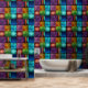 Revêtement de mur de bois clair et coloré. Utilisez-le sur les éclaboussures du dos ou sur des murs entiers. Les couleurs sont extraordinaires. Chaque carré offre un éclat de couleur différent.