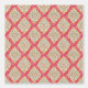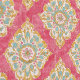 This wallpaper features ivory and aqua floral medallion motifs arranged in a diamond grid over a deep raspberry red background. The ornamental repeat pattern blends vintage style with boho charm, bringing bold color and rhythmic detail to your space. Perfect for creating a vibrant statement wall or a richly layered room with a collected, eclectic vibe. Pairs beautifully with natural woods, linens, and neutral or jewel-toned accents.