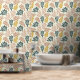 Motif feuille à fleurs de sauce terelle et papier peint en bâton. Vert, bisque et moutarde sur blanc cassé.