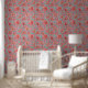 This wallpaper features a free flowing floral pattern in ivory, deep pink, and soft aqua leaves trailing across a richly textured raspberry background. The design mimics the look of hand-printed textiles on woven fabric, adding depth and vintage charm to any space. Its relaxed, organic layout brings a cottagecore boho feel that’s perfect for bedrooms, reading nooks, or creative corners. A bold yet inviting wall treatment with artisanal character.