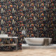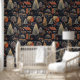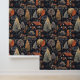 Whimsical cosy automne sombre automne motif botanique forêt botanique de forêt boisée. Design élégant et vintage inspiré de la nature. Le papier peint amovible peel and stick est parfait pour les appartements, les locations et les logements de courte durée. Le papier peint Peel and stick vous permet de mettre à niveau votre petit espace maison décoration et personnaliser votre location avec votre design unique esthétique. Plus de boîtes blanches ennuyeuses ! Ce design présente des couleurs chaudes d'orange et de vert sur un arrière - plan sombre. Le motif design présente des cabines, des arbres, des feuilles, des animaux botaniques floraux et des animaux boisés comme les ours.