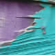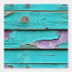 Faux bois défoncé en bleu turquoise et violet avec un effet de peinture écaillée motif répété et peel papier peint.