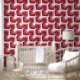 This pattern features a bold retro modern motif with interlocking geometric squares in vibrant hot pinks and crisp white, evoking 70s mod style. The seamless, repeating design adds playful energy to wallpapers, pillows, or curtains. Perfect for contemporary decor with a vintage twist.