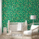 Papier Peint Botanique Vert Bleu Forêt Feuille Vignes Beige