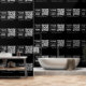 Papier peint minimaliste noir moderne, bureau d'affaires personnalisé avec logo d'entreprise, texte personnalisé et code QR. Personnalisez pour créer votre propre design.