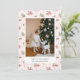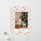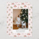 Carte de vacances avec un joli fond de papier peint rose et vert pastel avec une photo de famille associée à un vœu de vacances et votre nom et année dans une police sans serif.