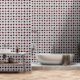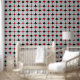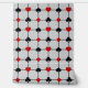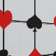 Ce papier peint présente un design original d'inspiration Art Déco avec un thème de jeu de carte composé de symboles de couleur rouge vif et noir (diamant, club, coeur & pique) centré où les lignes horizontales et verticales épaisses et noires d'une grille se rencontrent, avec un grand champ de texte personnalisé pour votre monogramme au centre.