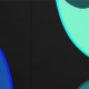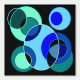 Motif abstrait coloré et géométrique, différentes nuances de vert et bleu intersectent cercles sur arrière - plan noir