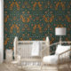 Papier Peint Chats bohèmes raffinés - Moody Turquoise & Orange