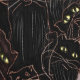 Chats noirs tirant avec les yeux jaunes dans une tesselation anamorphique.