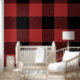 Papier Peint Chèque de Buffle Noir Rouge