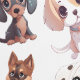 Un design motif de Chien Chien Coquelicot mignon avec des illustrations d'aquarelle de différentes races de chiens tels que, Dalmatien, Berger Allemand, Chien Grosse, Carlin, Poodle, Espagnol. Un joli papier peint mignon pour salon de chien, toiletteurs, vétérinaires, chambres pour enfants et nurserie.