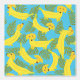 Avez-vous déjà vu du papier peint qui est plus de bananes ? C'est un chien ! C'est une banane ! Ce sont des chiens à base de bananes ! Ces chiens jaunes de style dachshund, faits de fruits, sont accompagnés de feuilles de palmiers verts et dressés contre un arrière - plan bleu vif, et sont prêts à apporter des couleurs joyeuses à vos murs.