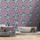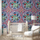Ce luxueux papier peint est orné d'un motif inspiré de la porcelaine ottomane, avec des motifs floraux et des bordures bleu marine.