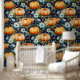 Papier Peint Chute Citrouille floral Patch sur bleu foncé
