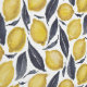 Papier Peint Citrons jaunes et Feuilles gris sur blanc