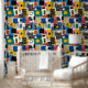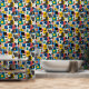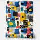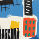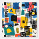 Cette oeuvre présente une composition dynamique et éclectique de formes, de motifs et de textures abstraits, superposés dans un agencement collage. Le design intègre des couleurs audacieuses comme le bleu, le jaune, le rouge et le noir, chaque élément variant en taille et en forme. Les lignes dessinées à la main, les grilles et les coups de pinceau apportent une touche ludique et spontanée à la pièce, tandis que l'agencement irrégulier des formes crée un sentiment de mouvement et d'énergie. La combinaison de formes géométriques et de marques à main levée donne à l'oeuvre une ambiance artistique moderne.