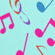 Colorful Musical Notes Design Fond d'écran avec couleur arrière - plan personnalisable.