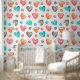 Papier Peint Coral Rouge Orange Bleu Turquoise Coeurs Motif d'a