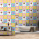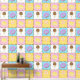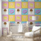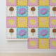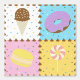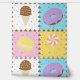 Satisfaites votre dent sucrée avec ce motif coloré qui propose de savoureuses friandises comme un cône de crème glacée au chocolat, un beigne de chocolat mauve, un macaron jaune citron, et une sucrerie tourbée rose et blanche séparée par des chips de chocolat et entourée de saupoudrées d'arc-en-ciel sur quatre carrés aux couleurs vives.
