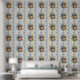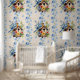 Papier Peint Crème à texture bleue rayée d'oiseaux floraux