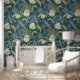Papier Peint Crème et bleu Floral Art Nouveau