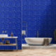 Papier peint rustique bleu cobalt à outils en cuir.