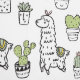 Photo Nadezda Barkova | Shutterstock. Numéro d'image : 1143288728 | Ce motif de gribouillis présente des alpacas et des cactus sur un arrière - plan blanc.