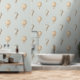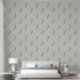 Papier peint d'inspiration boho mignon pour la crèche de votre bébé avec des montgolfières vintages bleues, taupes et crème sur un arrière - plan vert sauge clair.