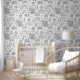 Papier Peint Cute Halloween Chats Toile de Jouy en noir et blan