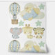 Papier peint bleu mignon pour la pépinière avec des animaux de la jungle en avion, montgolfière, nuages et étoiles