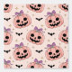 Ajoutez une touche de douceur avec ce motif sans couture Halloween unique ! Doté de charmants jack-o-lanternes roses ornées d'arcs violets, parsemés de chauves-souris noires et d'étoiles scintillantes sur un arrière - plan rose clair. Parfait pour un décor d'Halloween ludique, féminin et festif.