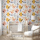 Papier Peint Cute Spring Chicks and Floral Pattern